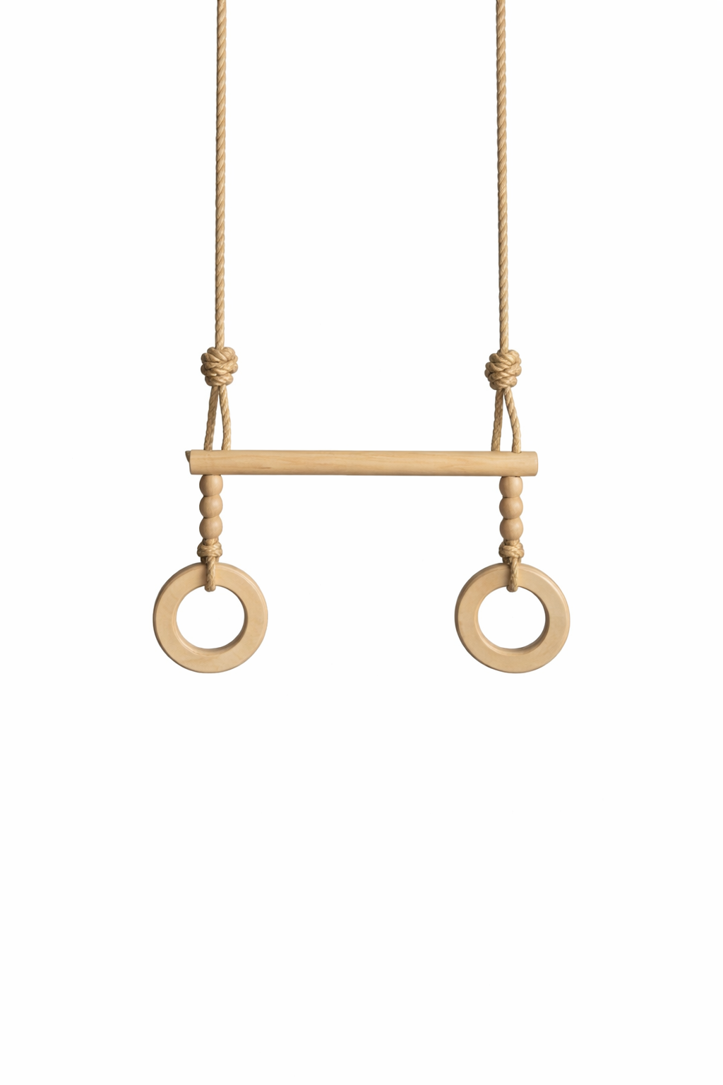 Trapez ljuljaška od bukovog drveta odlična za zabavu u sobi ili dvorištu. Podesiva tako da se karike i šipka mogu i odvojeno koristiti. Idealna za vežbanje motorike, snage i izdržljivosti i predstavljaće pravu zabavu Vašem mališanu. U setu dolaze i kuke za kačenje.